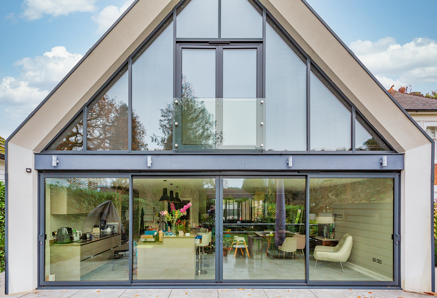Contemporary casement windows, flush frames or aluminium systems are commonly used in these properties, complementing modern architecture while delivering excellent insulation performance.